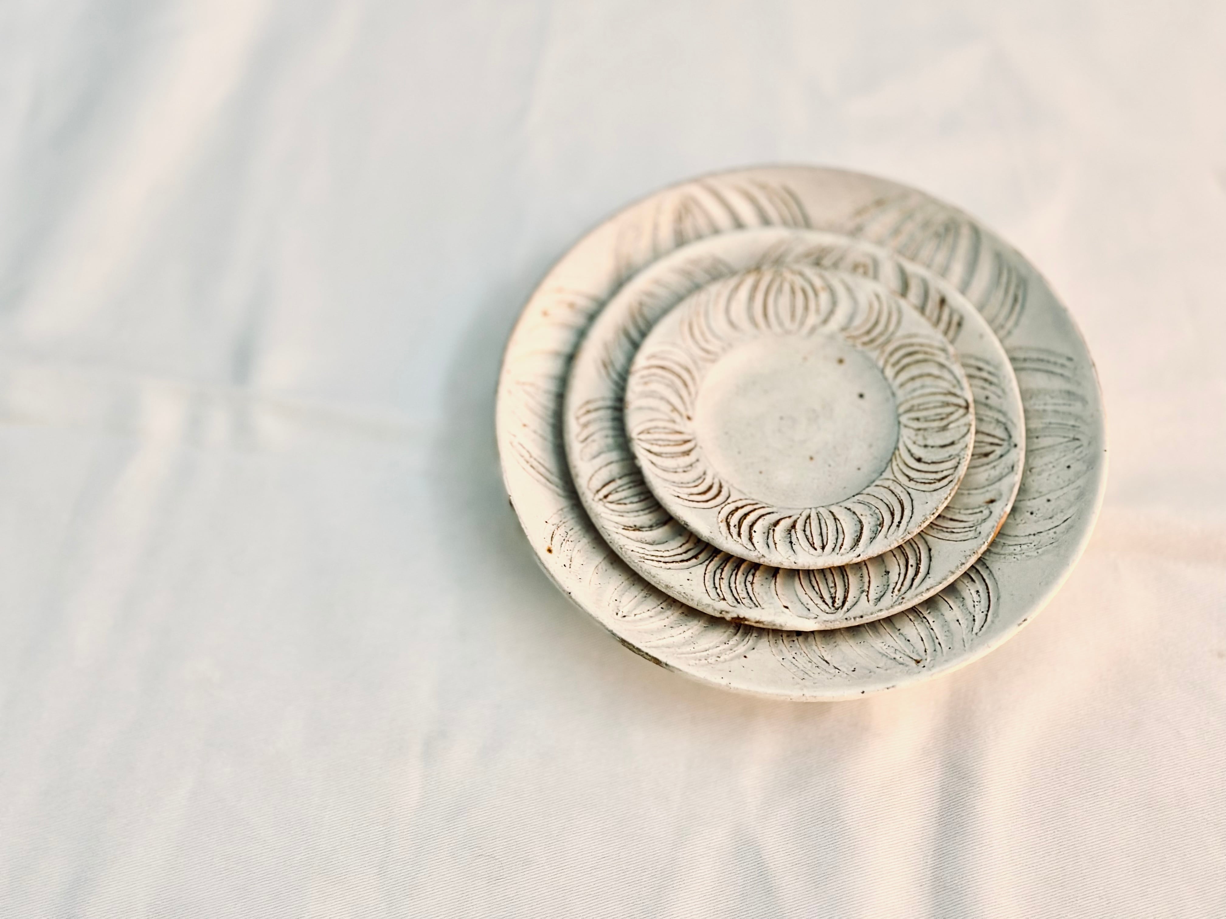 画像では写真1枚目の3枚重なった真ん中のお皿になります。