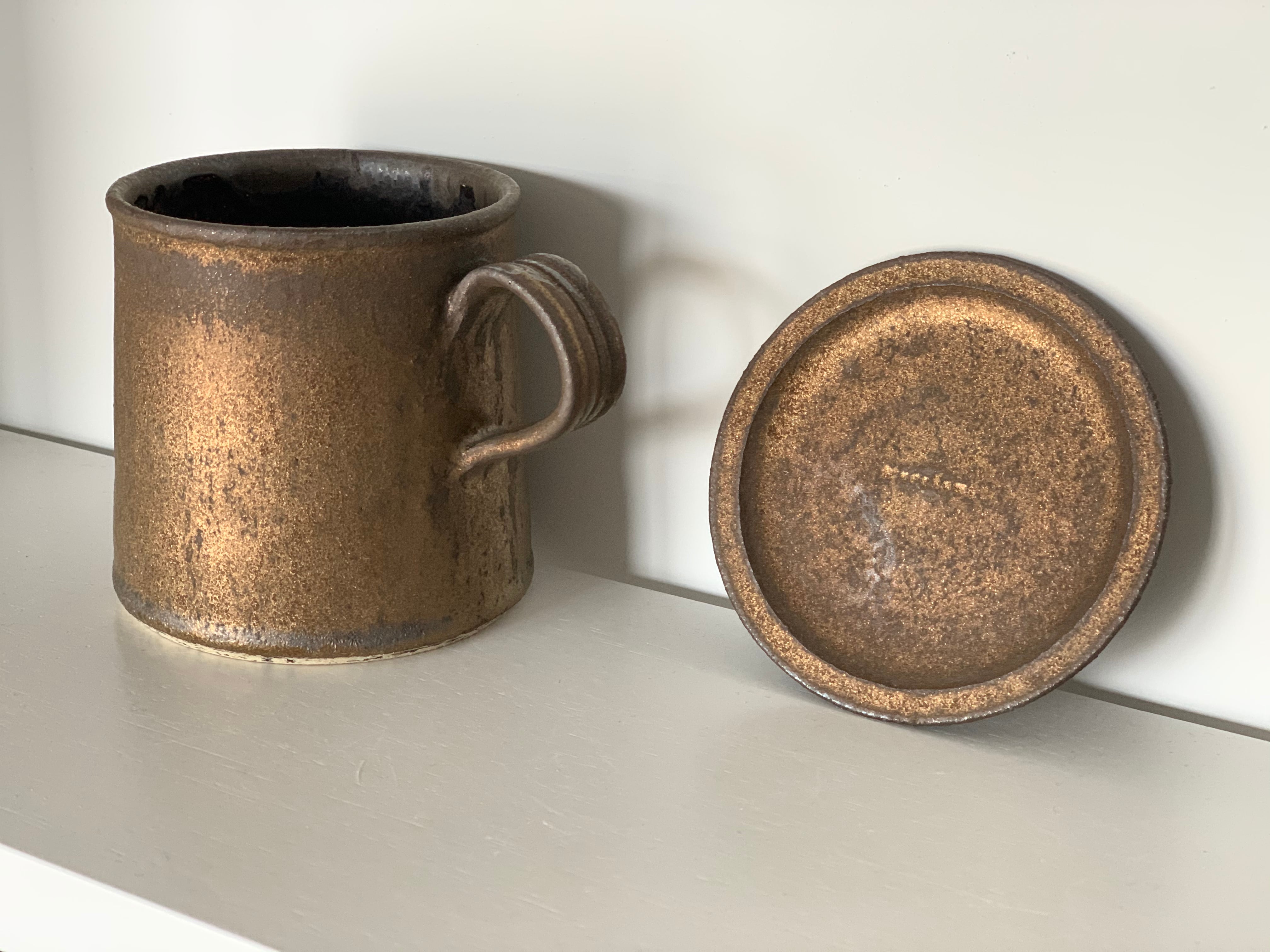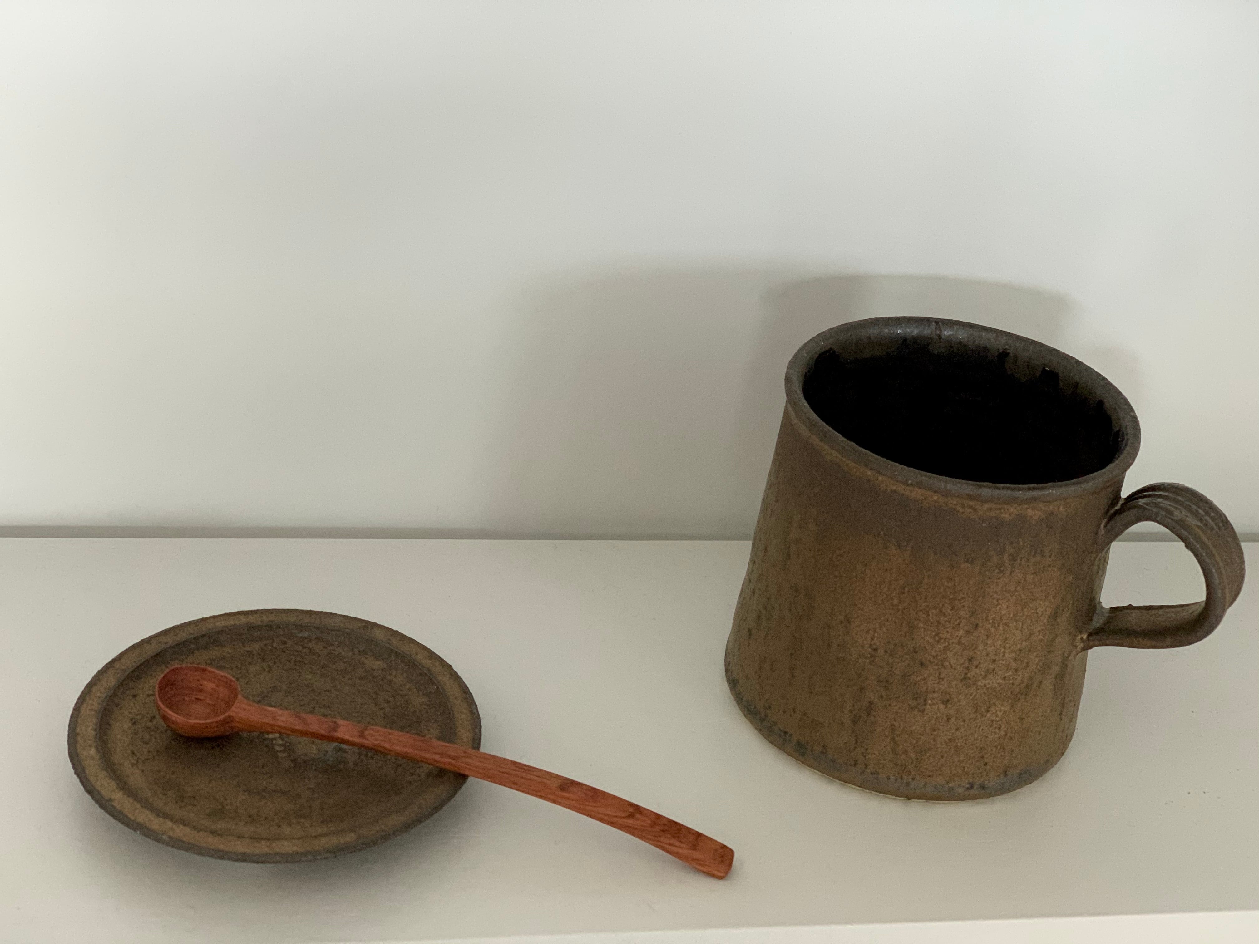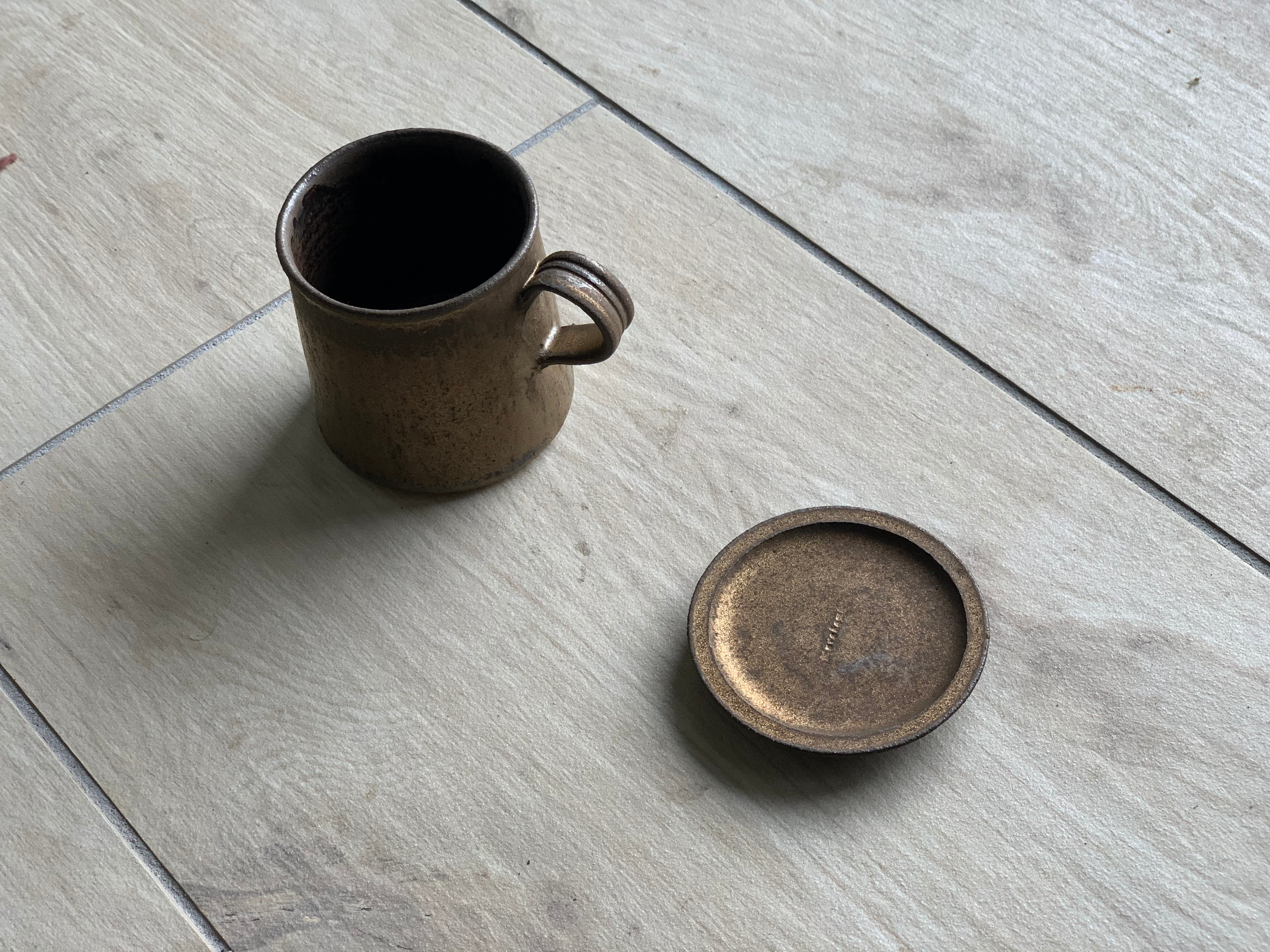 鉄錆台形マグロング(持ち手太)と蓋小皿のセット