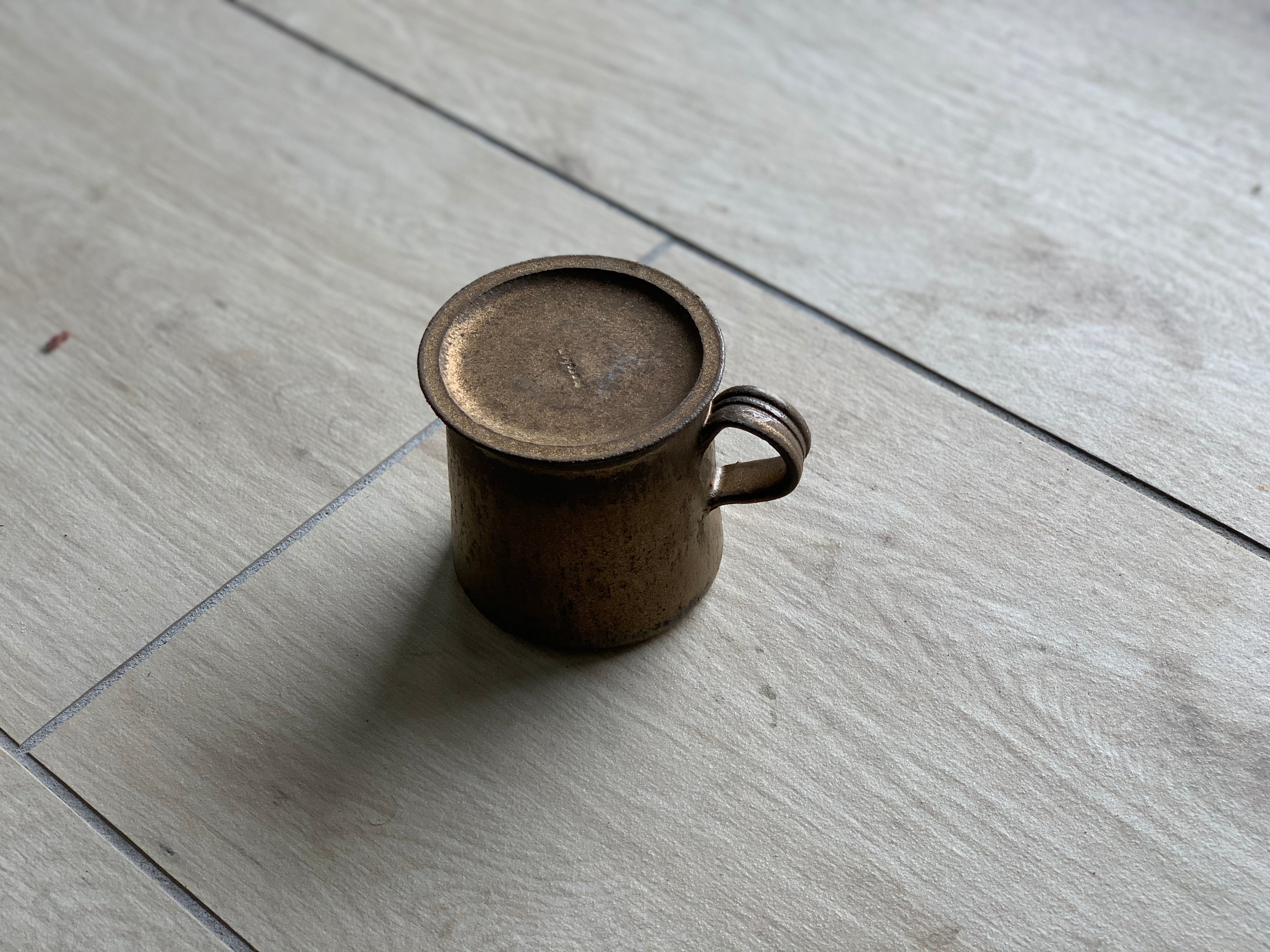 鉄錆台形マグロング(持ち手太)/ 蓋小皿のセット