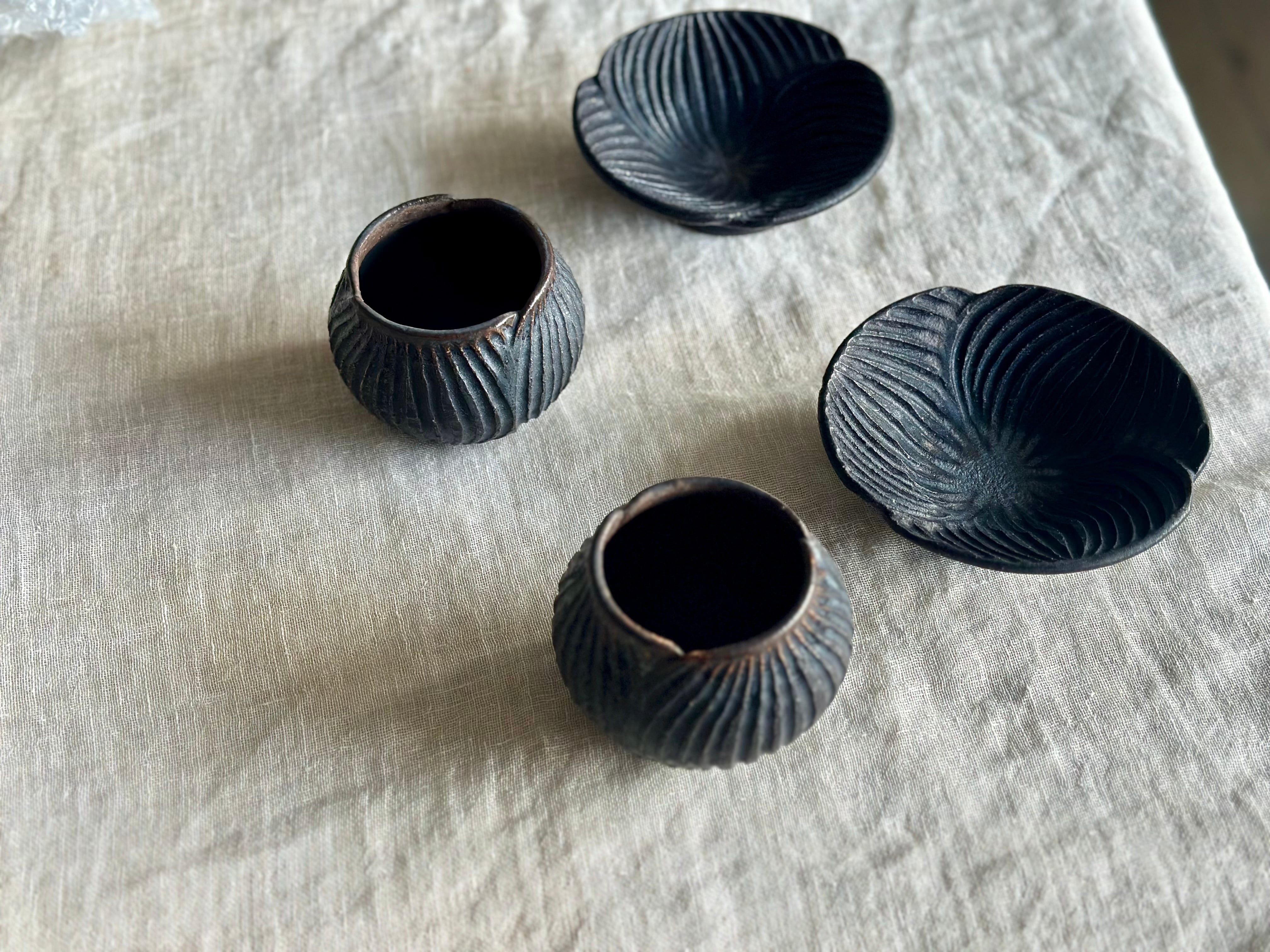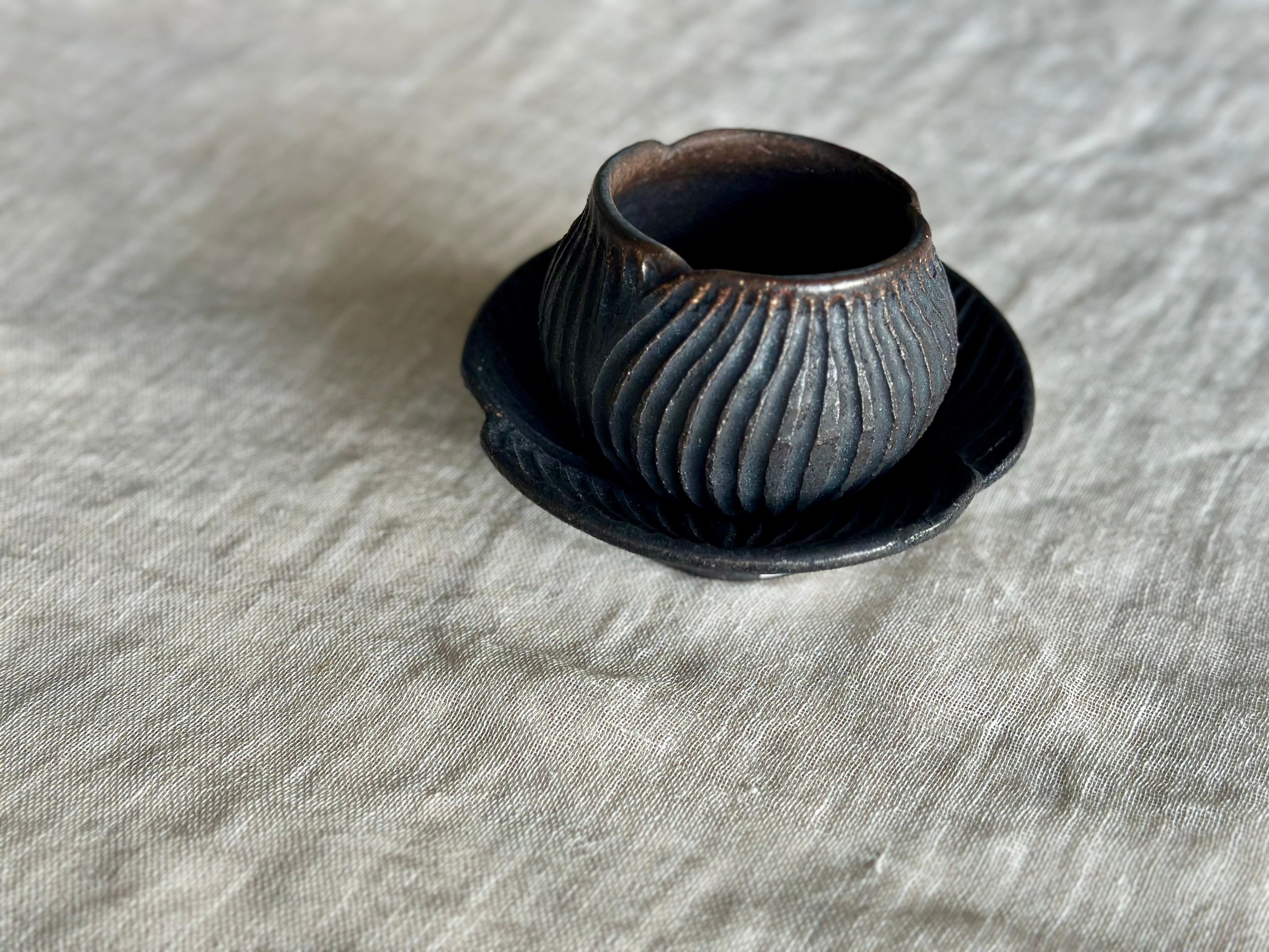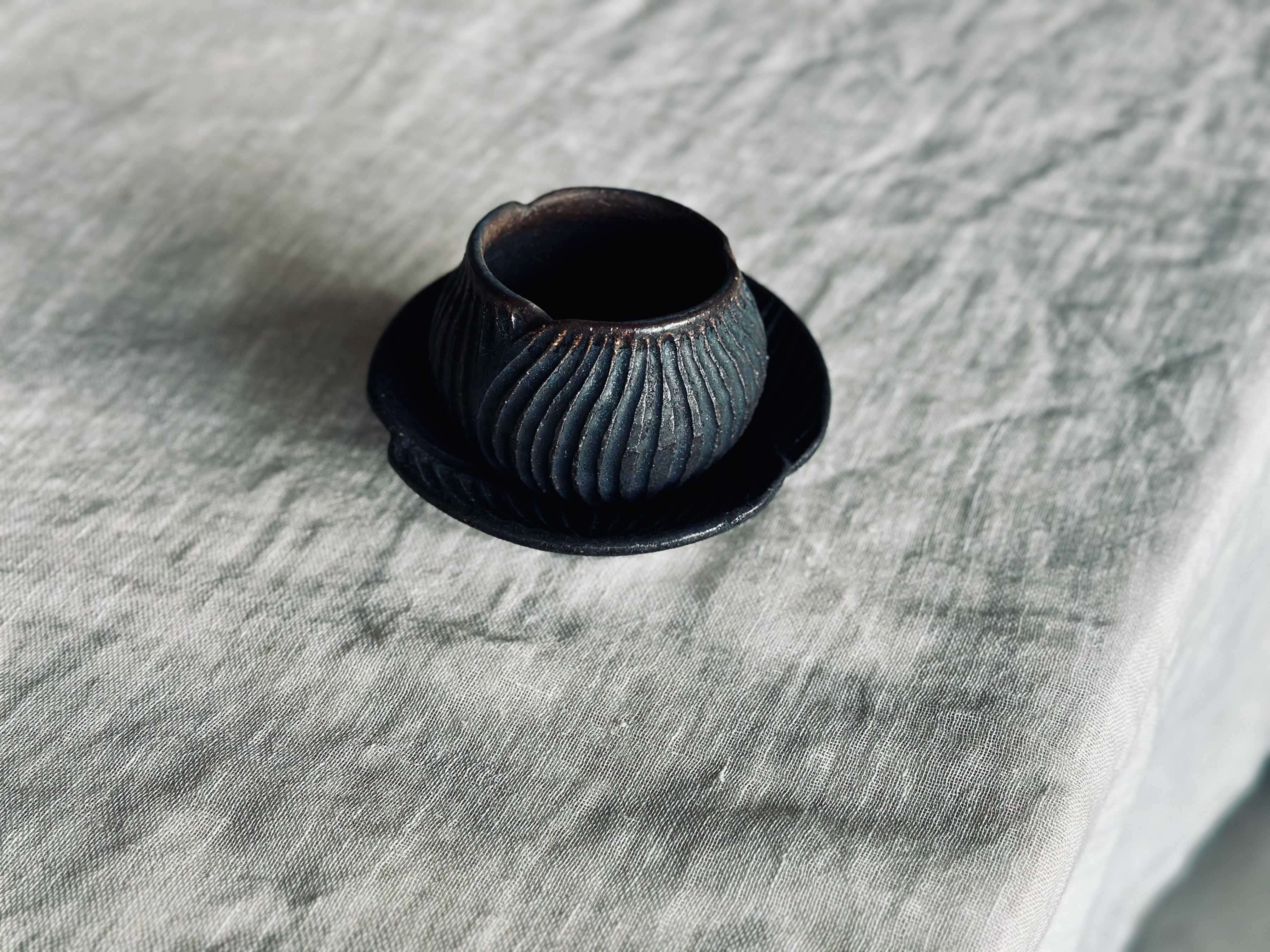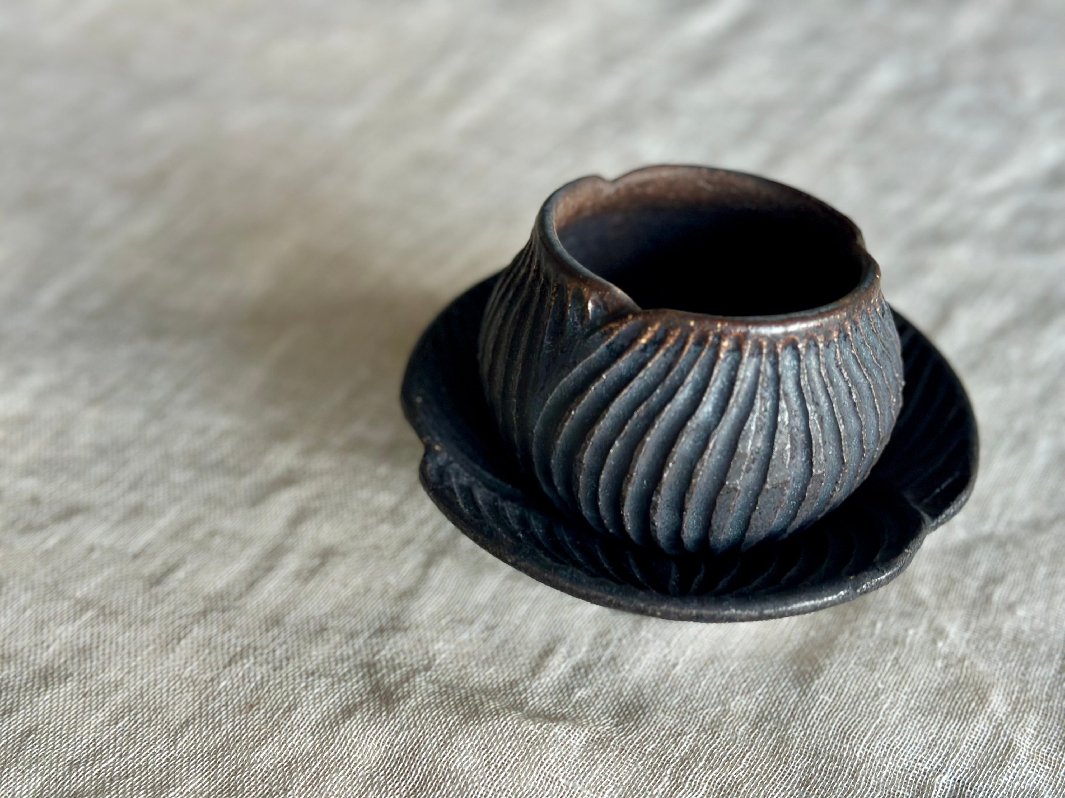 黒錆カップの中に施している釉薬を変えております。表側、内側の釉薬は2種類です。