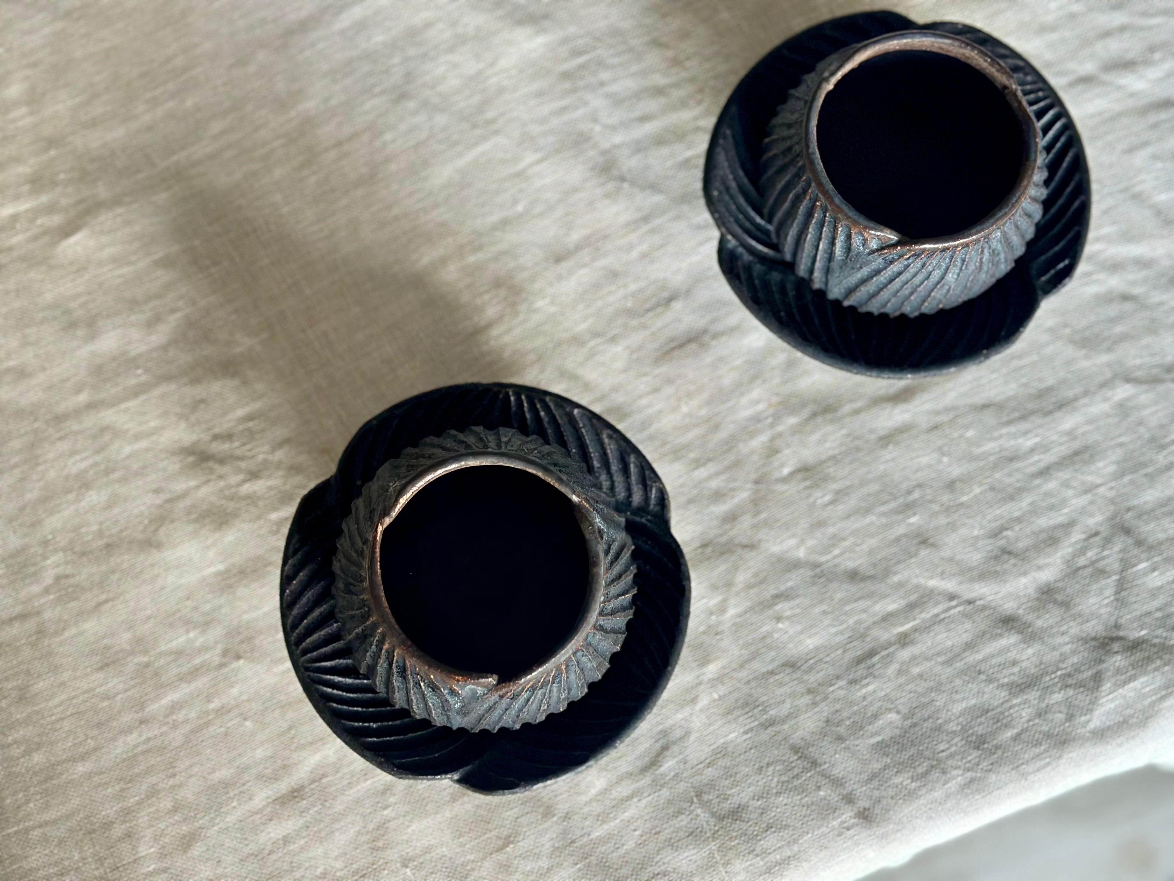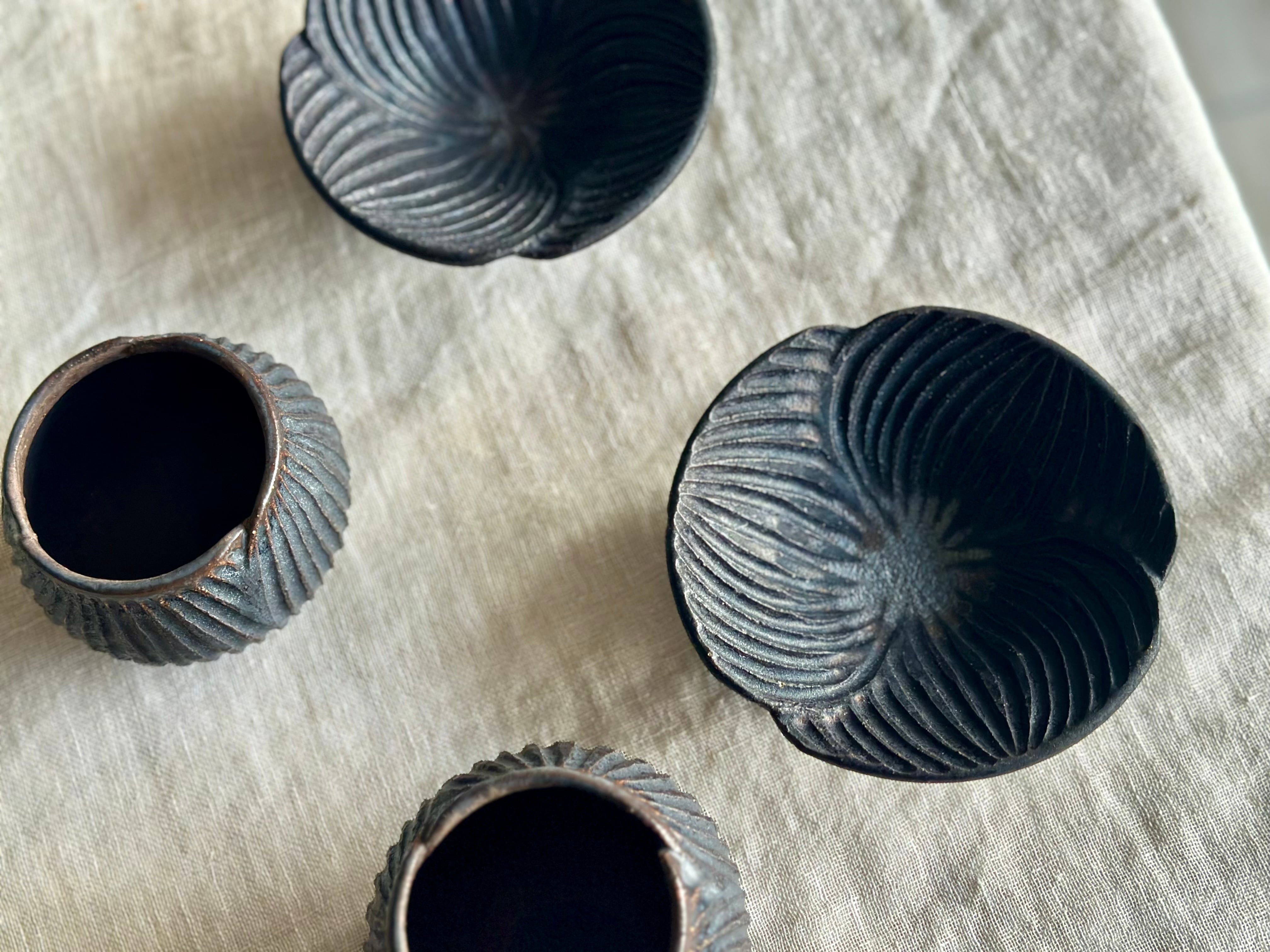 黒錆はしっとりとしたアンティークのような質感。同じ黒い色でも、光によって、また見る角度によっていろんな表情を見せてくれます。
