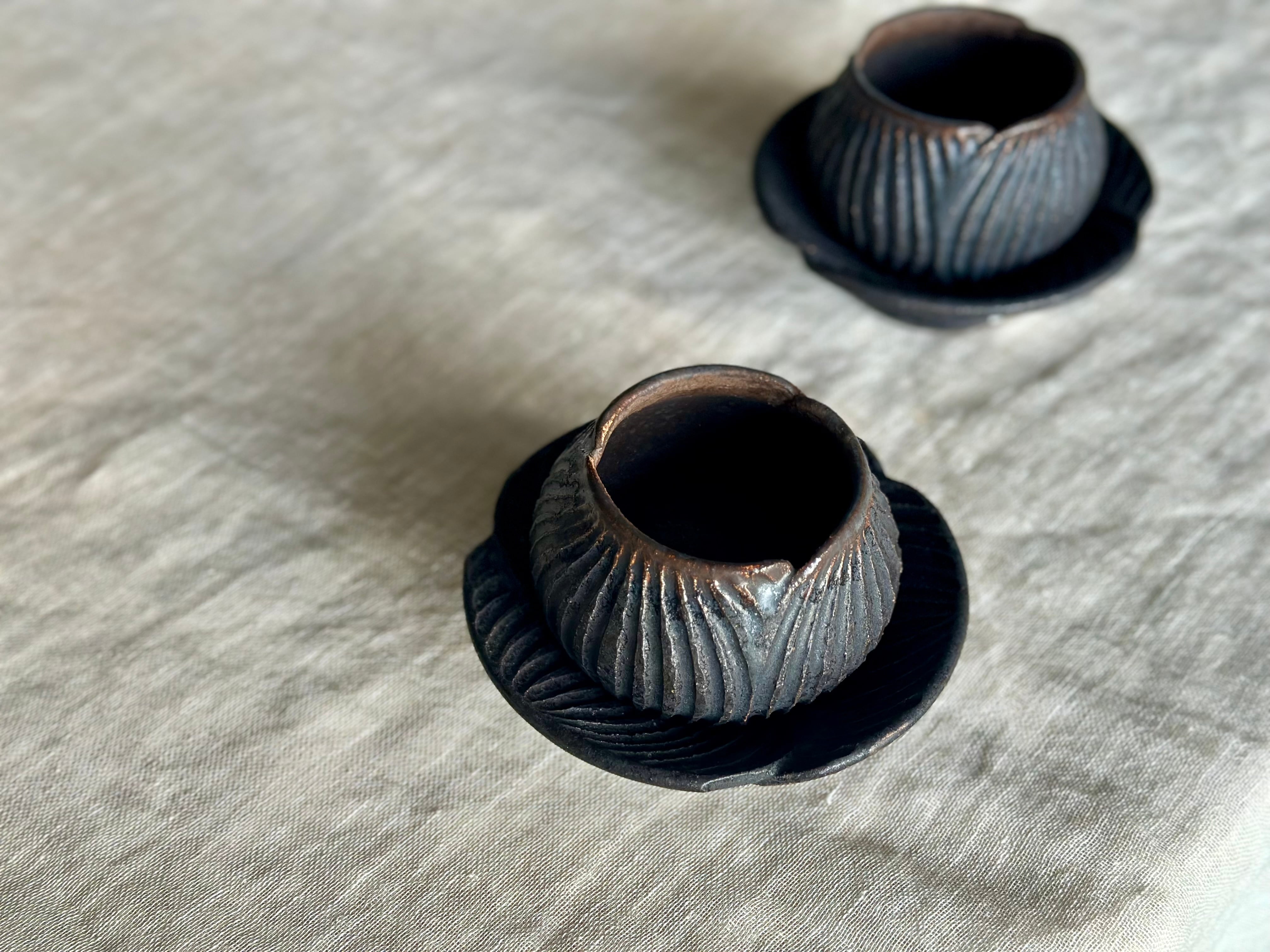 蕾が花開く様を想像して制作したカップ&ソーサー
